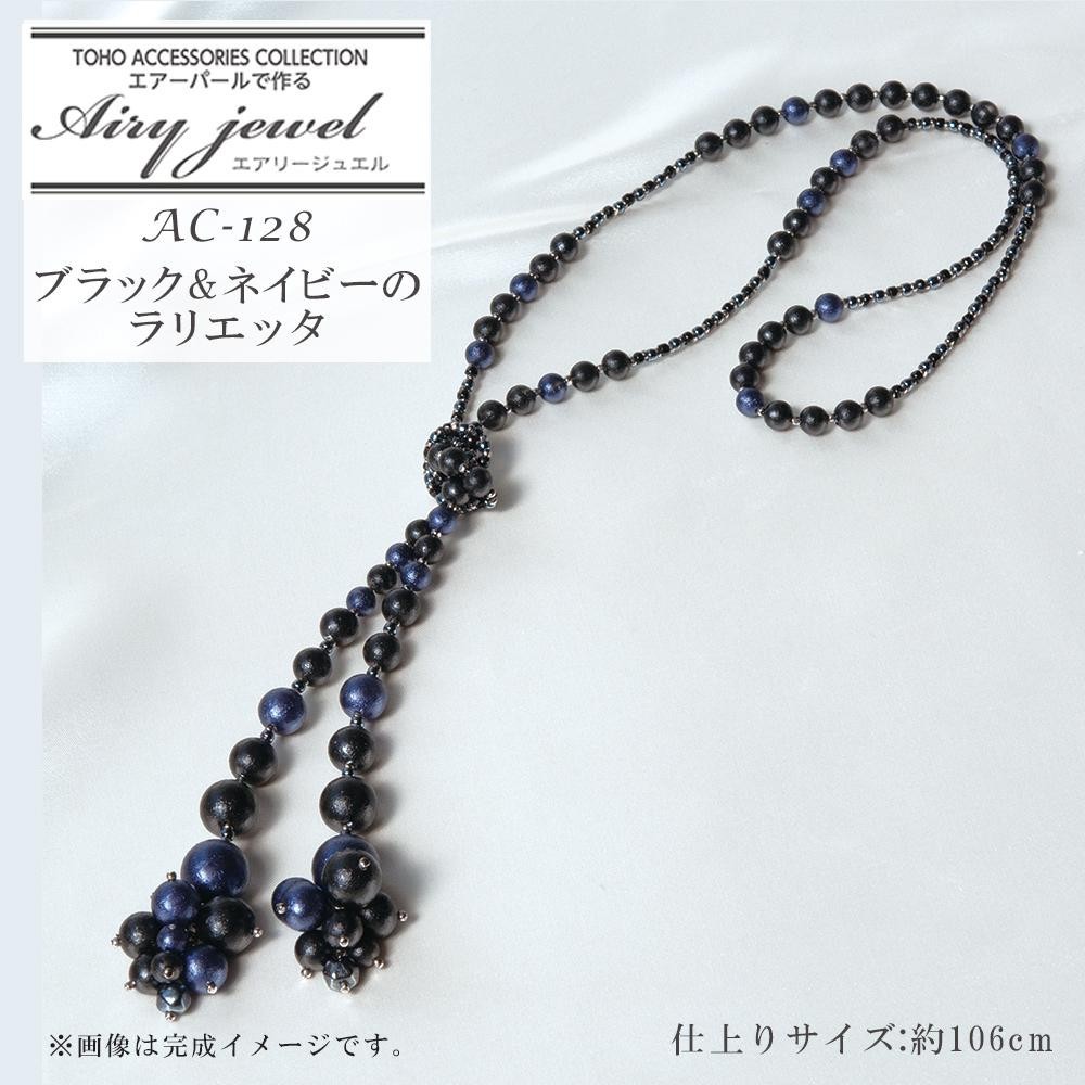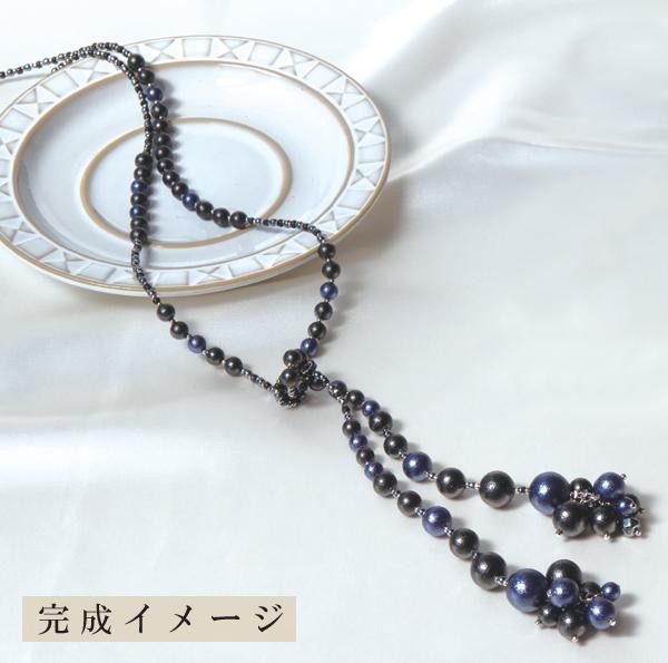 | 普段にもフォーマルにも使えるラリエッタ(ラリエット)の手作りキットです。留め金のないロングネックレス状なので付けやすい♪軽いプラスチック素材の「エアーパール」は軽い付け心地と繊細な光沢で、身につける人の肌を明るく魅せてくれます。初心者の方でも手軽にアクセサリー作りをお楽しみいただけます♪ |