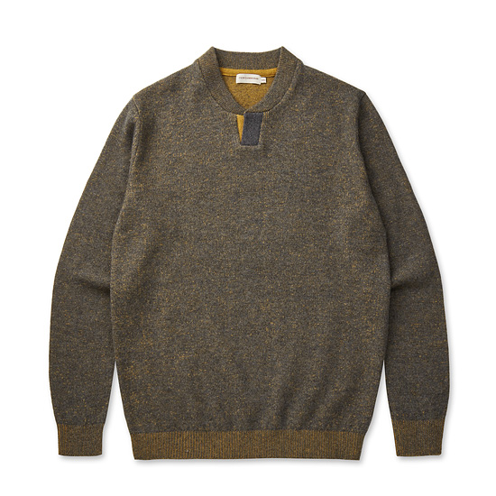 - 슬릿 네크라인 디자인에 이면 배색으로 감각적인 남성 니트.