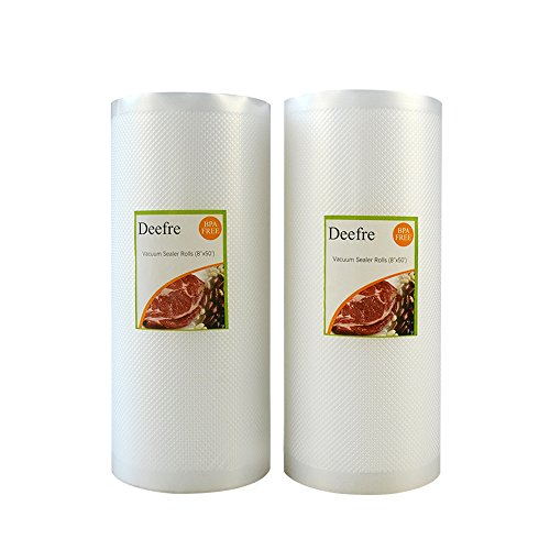 Vacuum Sealer Rolls Sous Vide Bags Food Vac Storage Heat Seal Microwave Freezer Safe Store A Meal - Deefre 4 mil Embossed Commercial Grade for Foodsaver BPA Free 2 Pack 8″x 50′ each