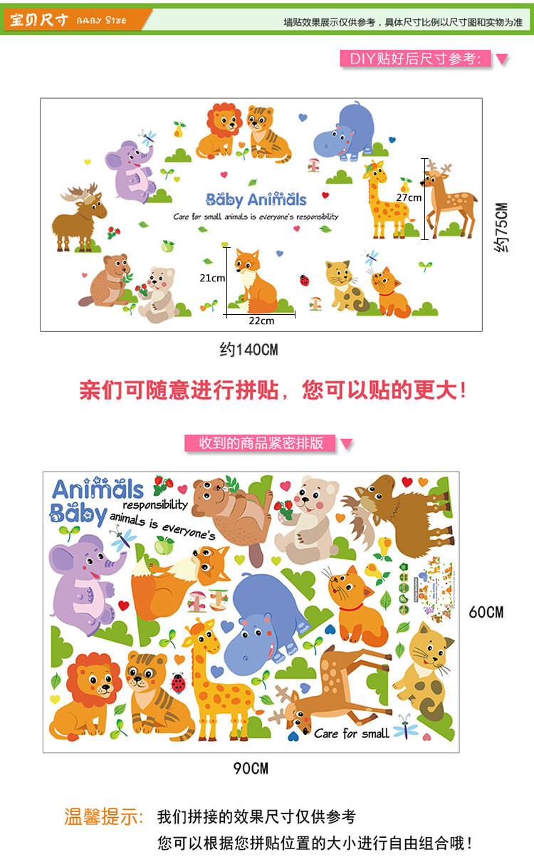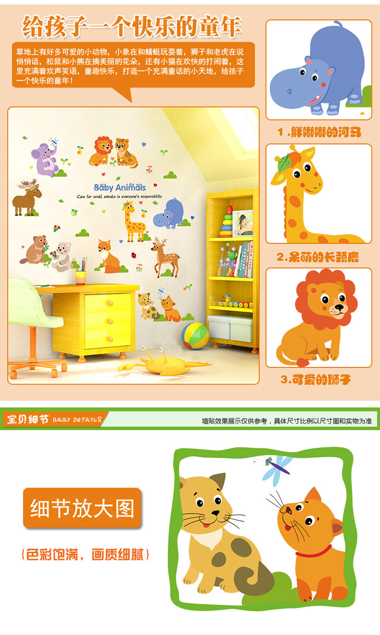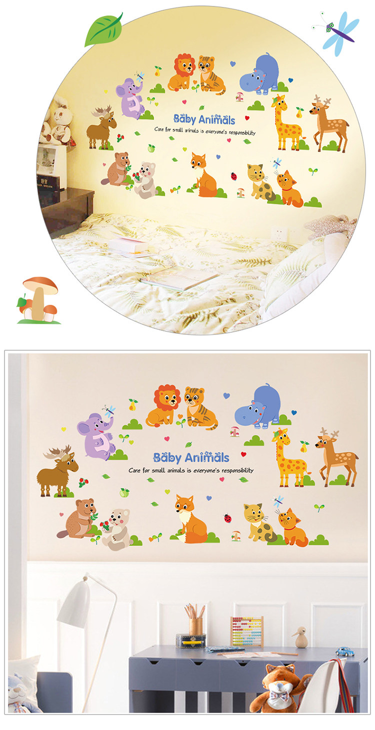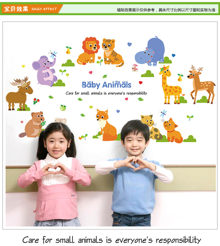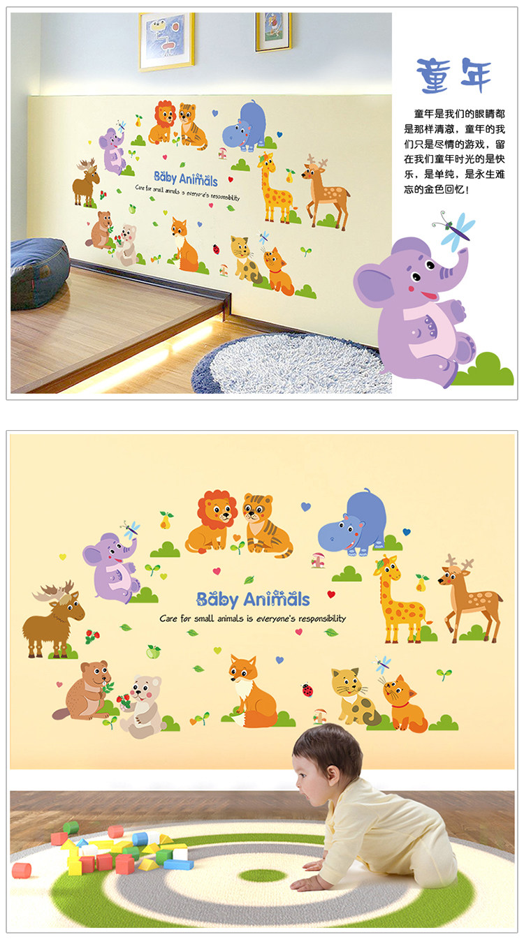 创意卡通可爱动物宝宝儿童房卧室床头幼儿园装饰环保可移除墙贴画