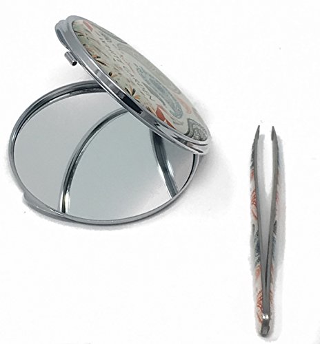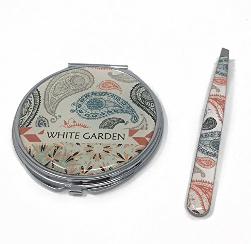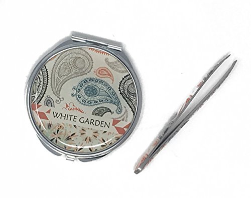 White Garden, Mirror /Tweezer Set Travel Makeup Mirror, Magnification Portable Folding Cosmetic Mirrors With Tweezer