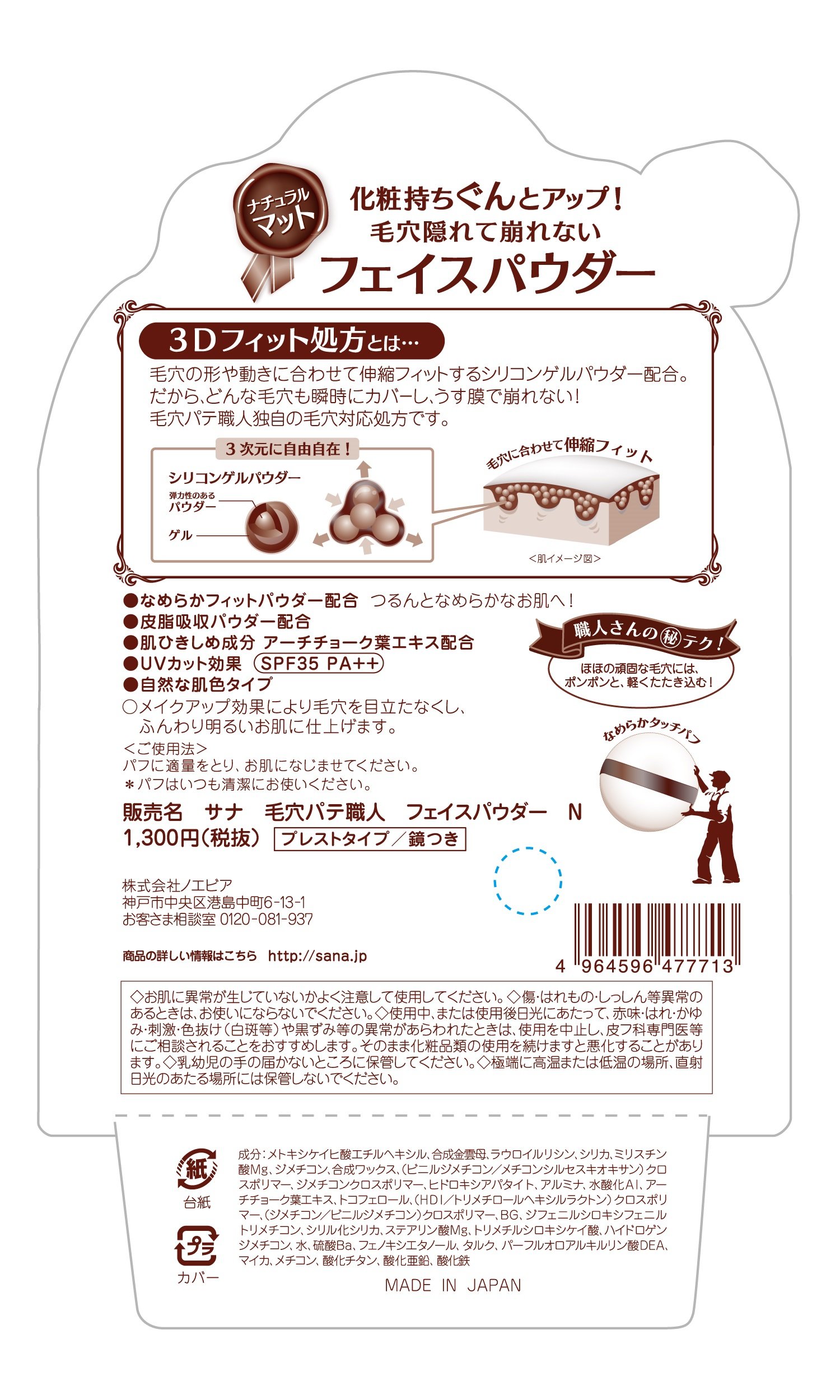 Sana Keana Pate Shokunin Pore Putty Face Powder SPF35 PA++