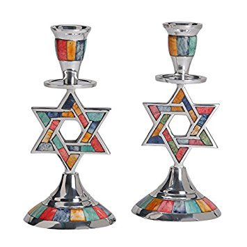 ()/Furniture Decor/Home Decor/DIRECT FROM USA/Aluminum Shabbat Star of David Candlesticks with Multicolored Decorative Inlay / Set of 2