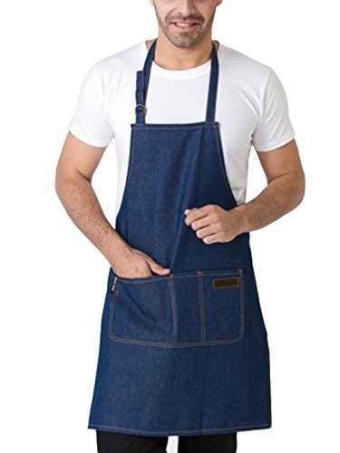 FEOYA Utility Apron with Optimal Coverage Rugged Denim Sleeveless Self-trim Blue