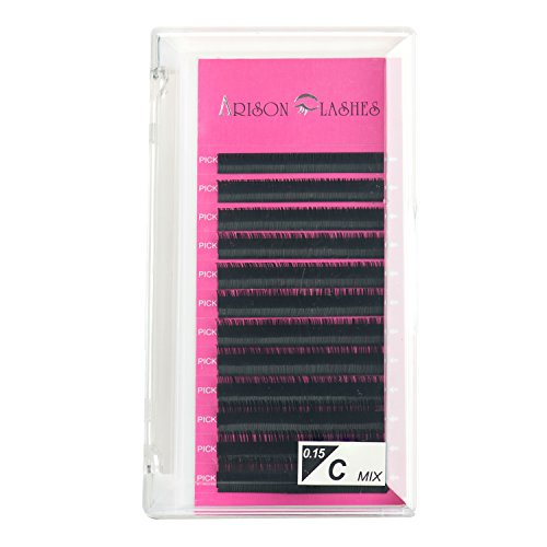 Arison Lashes Individual False Lashes | Fiber Eyelash Extensions | Mixed Length for Salon Use (C Curl, 0.15mm, 8-14mm Mixed)