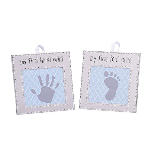 - Set comes with 2 silver metallic frames to showcase baby's hand and foot print