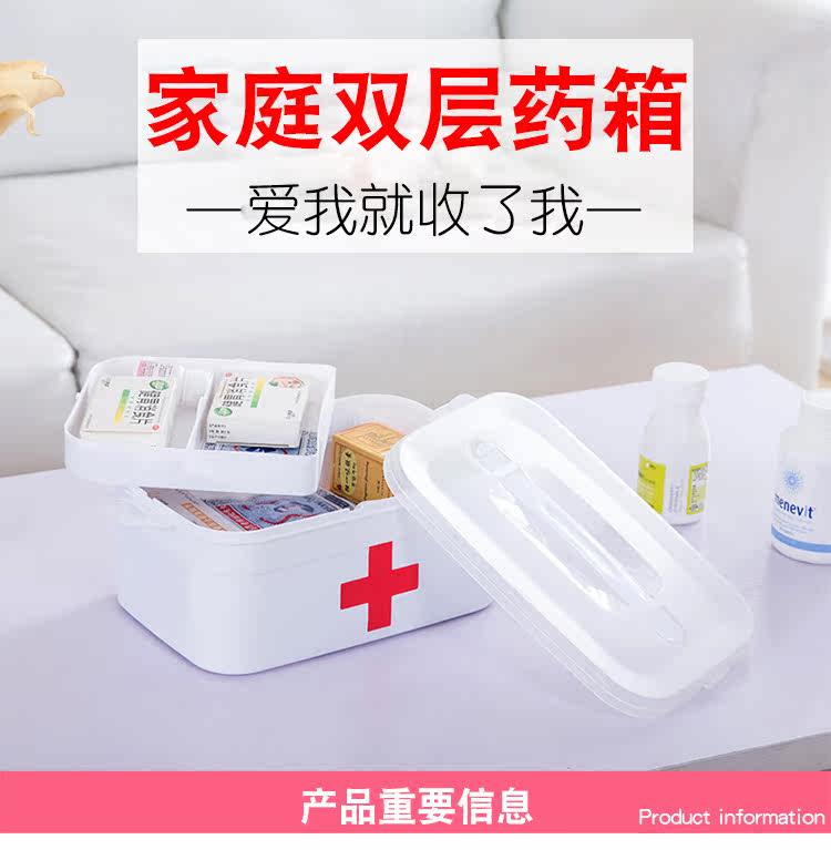 家用双层医用药箱家庭急救药品医疗收纳箱储物箱收纳盒