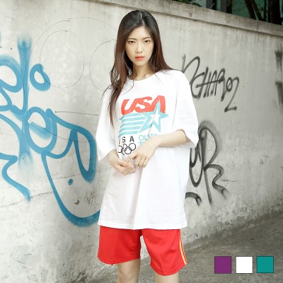 USA 박스 티셔츠 넉넉한 핏으로 누구나 착용하기 좋은박스 티셔츠를 소개합니다.남녀공용 사이즈로편안하게 즐길 수 있는 티셔츠입니다!빈티지스러운 앞판 프린트가 특징이에요 :)트레이닝이나 짧은 숏팬츠,스커트 등과도 아주 잘어울리는 아이템으로 활용도 높게 착용하실 수 있어요!