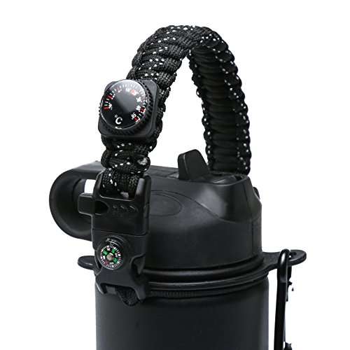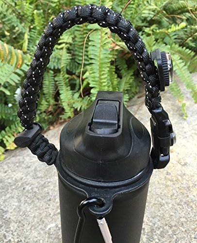 IMPORTANT: please see the instructions at the photo.SET CONTAINS: PARACORD HANDLE with adjustable knot, WIDE MOUTH PLASTIC RING and METALL CARABINER. Our MOCE Paracord handles is the most SECURE and CONVENIENT way to carry your expensive water bottle. A secure and convenient way to carry your water bottle.Perfect for outdoor hiking, camping, biking, backpacking,yoga, etc all sport and outdoor activities.Without having to hold your bottle with both hands. Easy to carry
