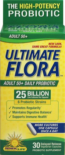 From the manufacturer: Promotes regularity Maintains digestive balance Helps restore probiotics lost with age As we age, our level of Bifidobacteria declines.and, Ultimate Flora Adult 50and contains 100% Bifido to help maintain a healthy colon environment. |