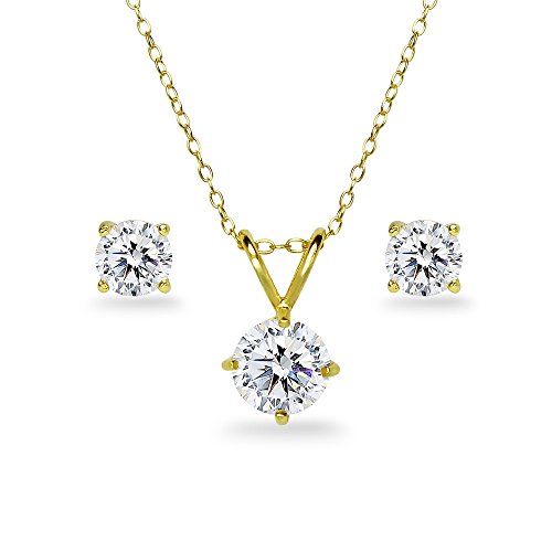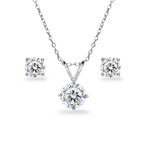 This stunning set features a 7mm round solitaire stone made with Swarovski Zirconia necklace and 5mm round stud earrings for a dazzling look. The set is crafted entirely of fine sterling silver and is nickel & tarnish free. The necklace secures by a spring-ring clasp and the earrings secure by post with friction-backs.