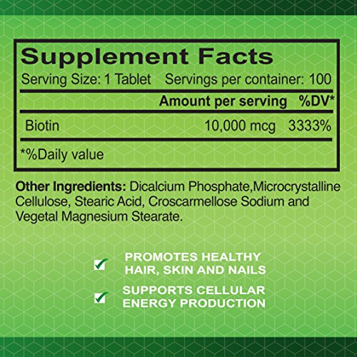 -. Feature : LOOK FRESH, YOUNG AND REJUVENATED: Do you want to look beautiful, radiant and attractive? Are you ready to make some heads turn? Well, this amazing biotin supplement is a must have for you! The proP.R.Ietary, nutritive complex will nourish your body, helping you acquire long, shiny hair, strong nails and a glowing complexion. / DO NOT WASTE YOUR MONEY AND GO AFTER TRUE QUALITY:Forget about cheaply made, untrustworthy supplements that work no better than placebo pills! This top notch biotin supplement is made in the USA under the strictest quality regulations. Moreover, it is GMP certified, Third Party tested and manufactured with raw materials that are painstakingly sourced from around the world. / GIVE YOURSELF A PUSH:Apart from helping you look fresh and youthful, this amazing biotin vitamin supplement will also help you feel stronger and more energized by giving you a boost. Uplift your spirit and do your best on any occasion. / GET RID OF THOSE EXTRA POUNDS:If you have been trying to lose weight, you have another reason to pick this incredible biotin supplement. Supporting your digestive health and facilitating the food break down procedure, it will boost your metabolism, helping you manage your weight in an easier way. / ALL YOU NEED ISA CAPSULE A DAY:Enjoying the unmatched benefits of biotin requires no effort! All you have to do is take one tablet daily, preferably with your meal. As simple as that!