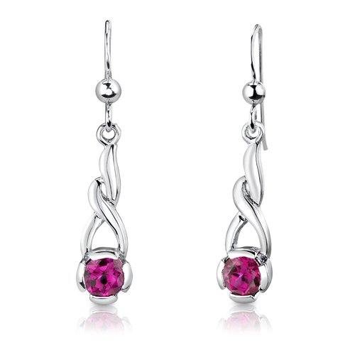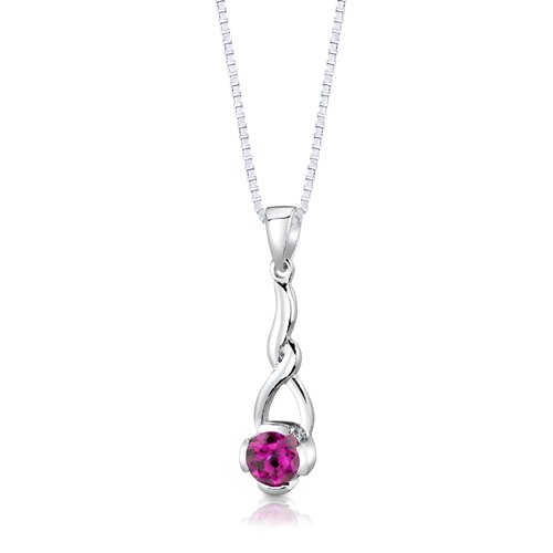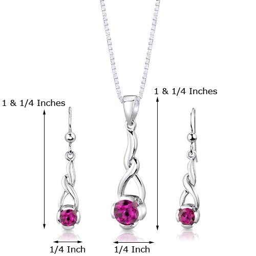 Earrings = Created Ruby 2 pieces, Round shape, 5.00mm, Earring Dimensions: 1 1/4 x 1/4 inches. Pendant = Created Ruby, 1 piece, Round shape, 6.00mm. Pendant Dimensions: 1 1/4 x 1/4 inches. Earrings and Pendant have a total weight of 4.90 grams and are set in pure Sterling Silver Rhodium Nickel Finish with .925 stamp. Gemstones have a vibrant rich color and eye clean clarity. The Pendant and Earrings feature top quality workmanship and a beautiful finish. Includes Free 18 inch Sterling Silver Rhodium Nickel Finish Box Style Chain, Free Ribbon Gift Box.Feature