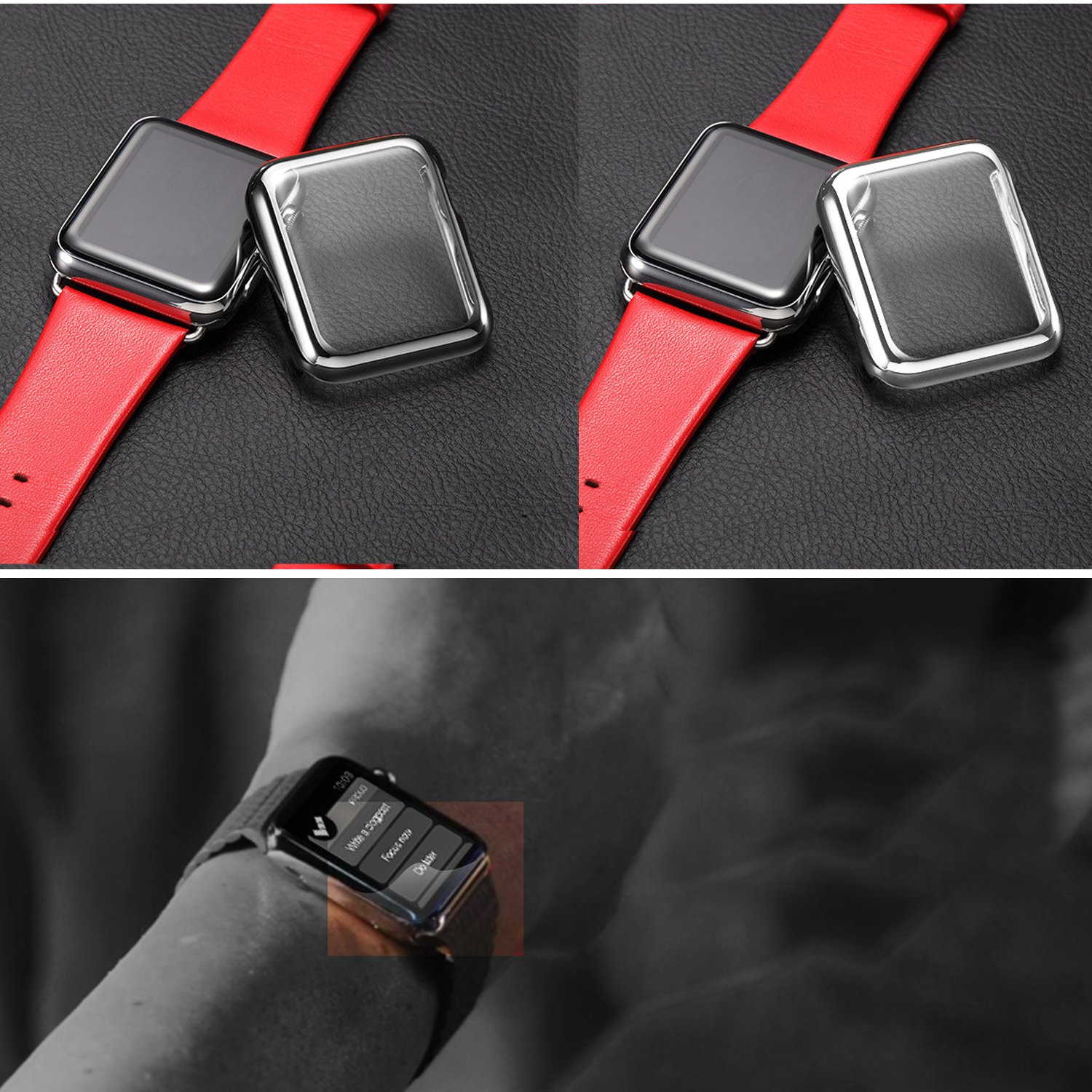The cover can be fitted with AppleWatch in a perfect fit and it protects the side part firmly and it will not scratch or stick.