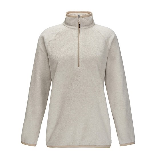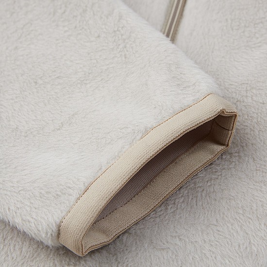 - 부드러운 플리스 외관의 반 집업 스타일의 여성 자켓.