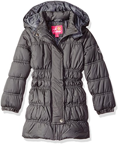 Pink Platinum Big Girls' Long Puffer Jacket with Accessories, Charcoal, 14/16
