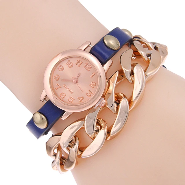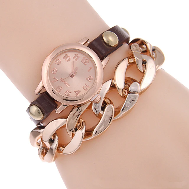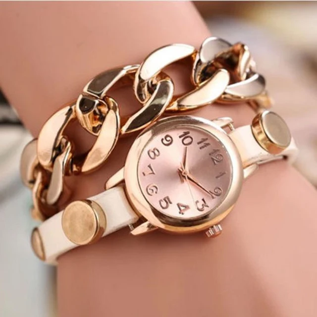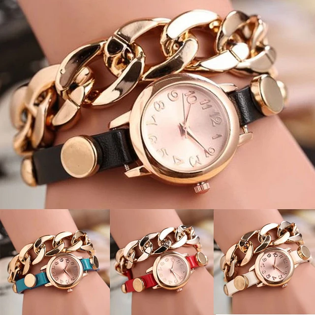 | [해외] 캐주얼 여성의 펑크 체인 팔찌 복고풍 체인 랩 가짜 가죽 밴드 리벳 석영 손목 시계 Shellhard Relojes Mujer |