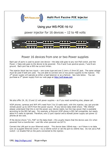 WS-POE-16-24v120w 16 port Poe injector - 24v Power over Ethernet for Ubiquiti, Mikrotik and other 24 volt devices up to 120 watts total, 5 Amps