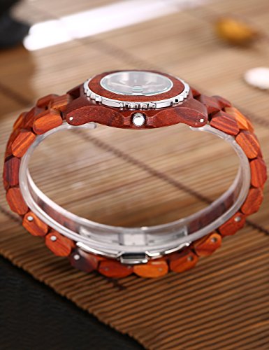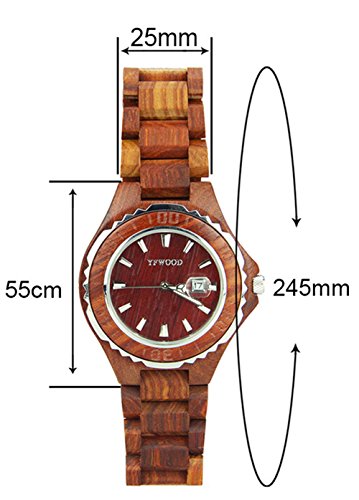 -. Feature : 本体サイズ:ケース直径(リューズ含まず):50mm; ケース厚み:10mm。 バンド長さ:250mm; バンド幅:25mm。 本体重量:75g; 発送重量:170g。 / 素 材:ケース素材/ベゼル素材/バンド素材:天然赤檀木:暗赤色の鮮やかな色をした高級材。古くから珍重されていきた木材。 / 梱包:木製腕時計1本+取り扱い書+高級木製包装(日本製クォーツムーブメント 3気圧防水) / 心得:天行は健なり、君子もって自強して息まず。地勢は坤なり。君子は厚き徳をもって物を載せる。控えめ、中身がある天然木製腕時計。始めは目立たないが、使い込むほど好きになること。この賑やかの世界にちょっと静かな時間を与える感じ。使い込むほどに手の脂と摩擦により、木肌が濃い、深みのある艶やかな色に変化していきます。長くお使いいただき、年月を経た木製時計で新品では醸しでないアンティーク風の木の感触をお楽しみください。 / ※天然の木のため、湿気等にはお気を付けください。強い衝撃により割れてしまう場合がございますので、取扱にはご注意ください。何か問題がございましたら、いつでもメールにてYifan Founder をご連絡下さいますようお願い申し上げます。
