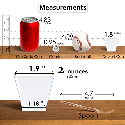 LIFE IS SHORT, EAT DESSERTS FIRST! The cups hold 2 oz which makes them a perfect for almost all desserts such as jello, parfait, cheesecake, panacotta, ice-cream, mousse, pudding appetizers, custard, sliced fruit, tiramisu or any other pastry that comes to mind.