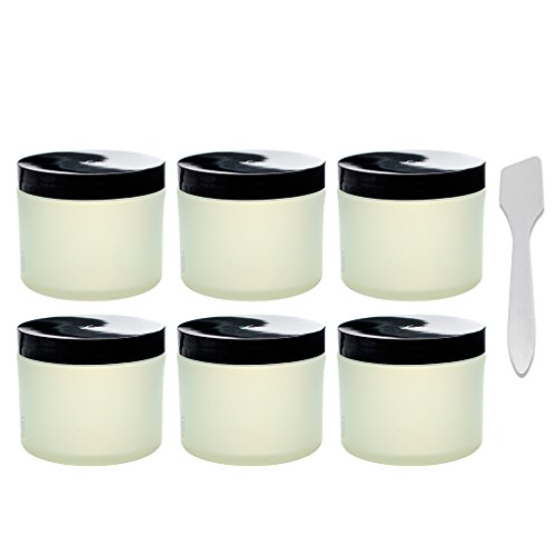 4 oz Frosted Clear Plastic Thick Wall (BPA Free) Jar with Black Smooth Lid- (6 Pack) + Spatulas and Labels
