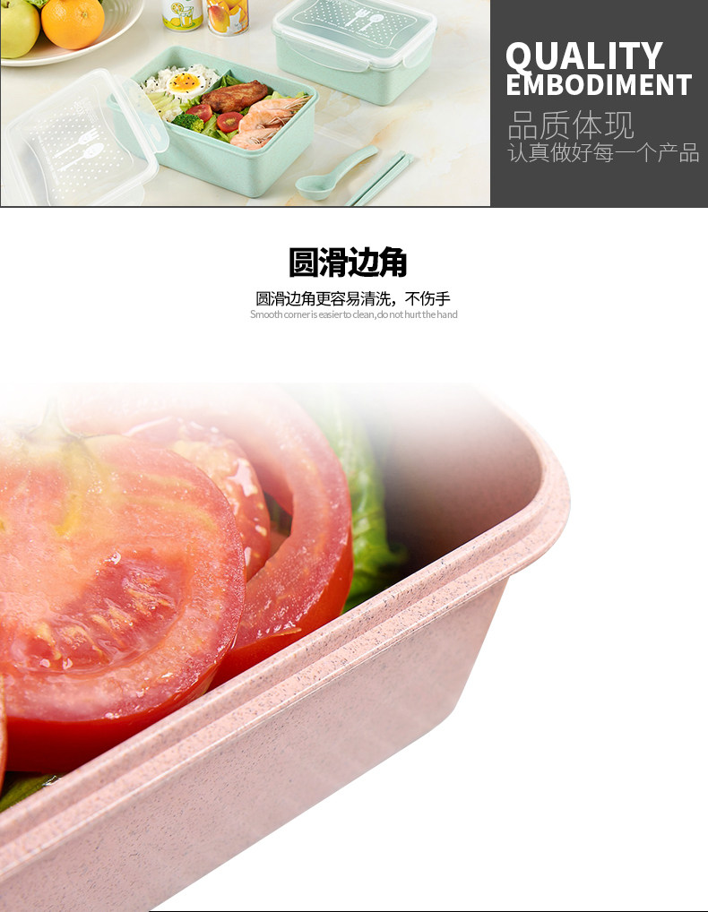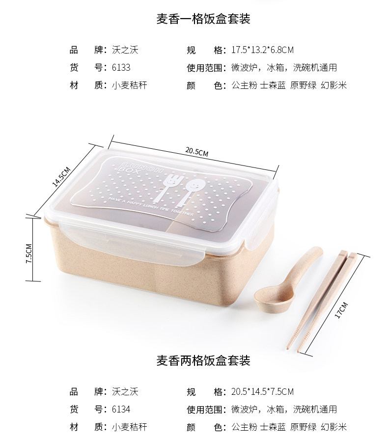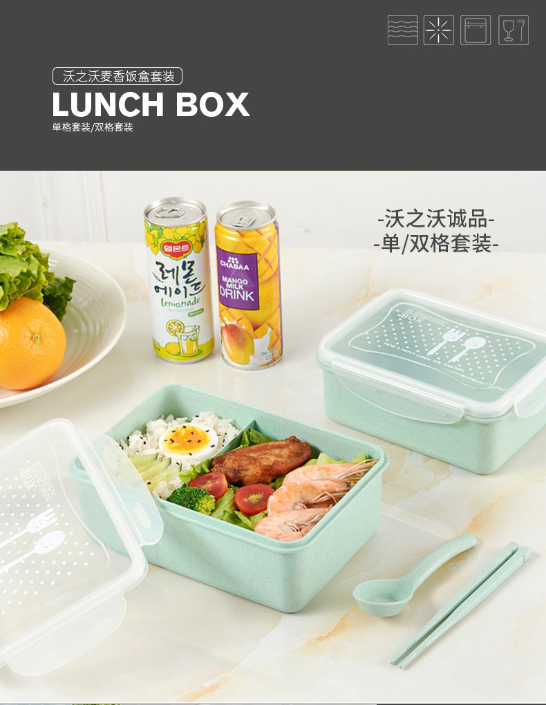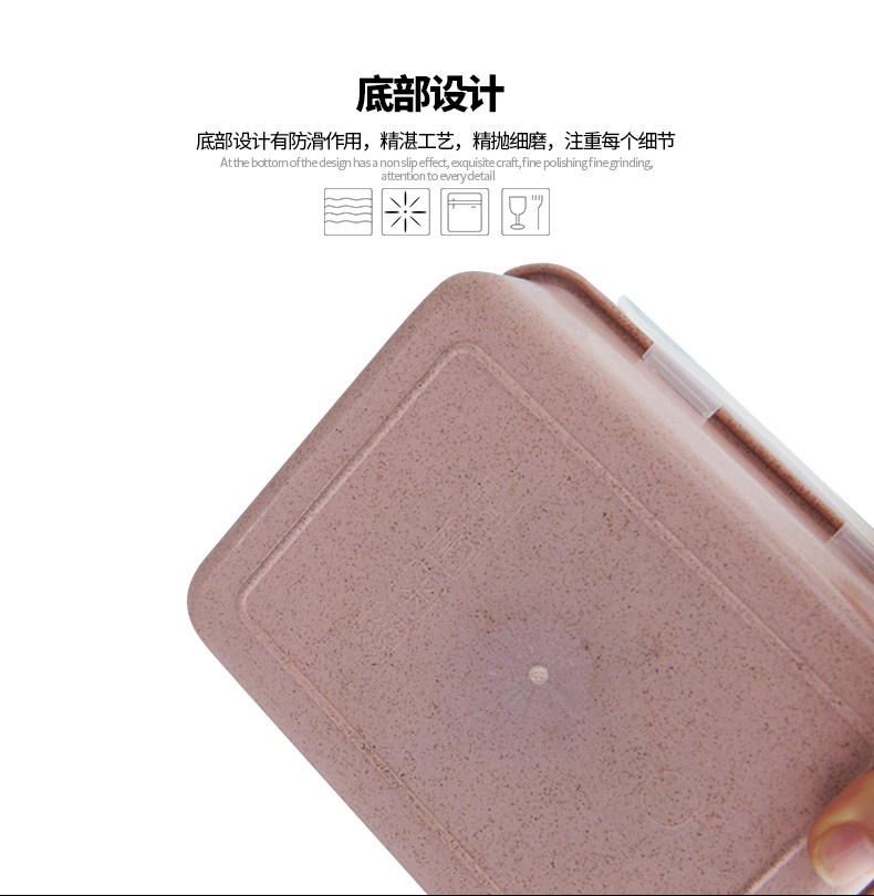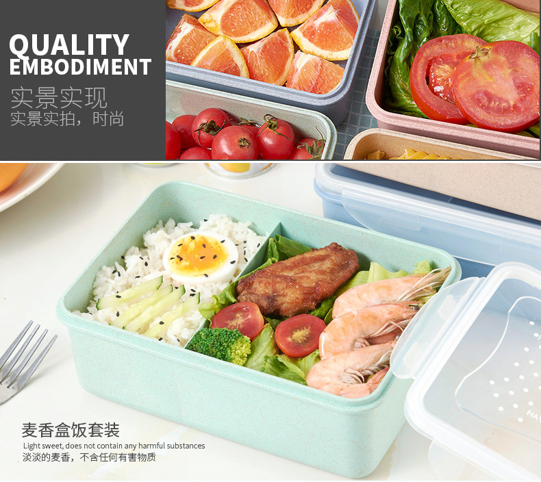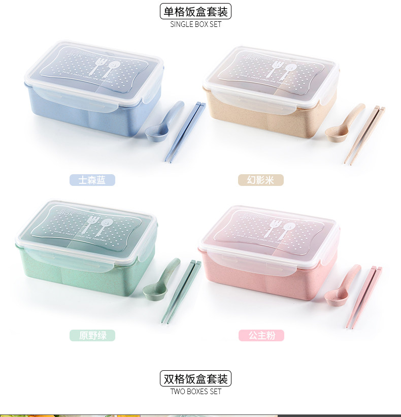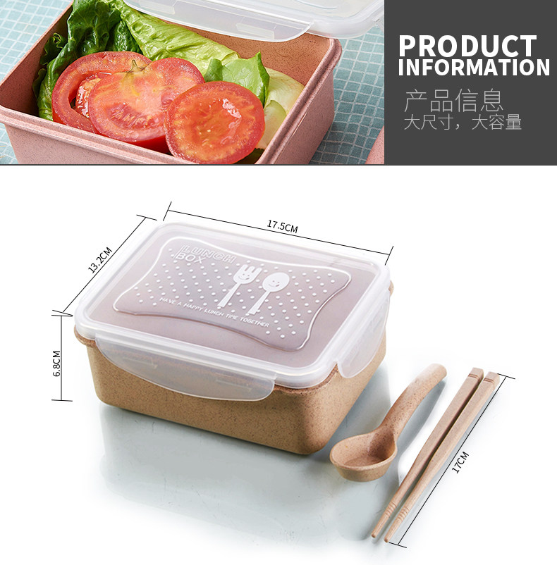 创意小麦色方形饭盒套装 可分隔便捷保鲜盒密封送餐盒学生便当盒