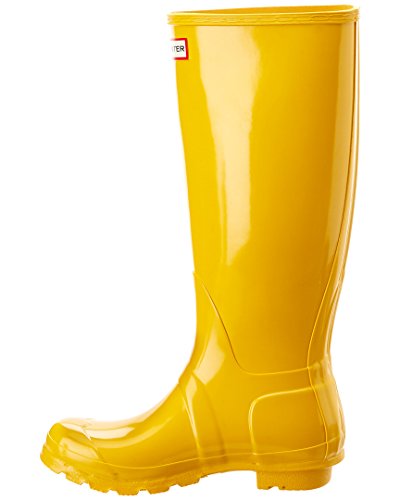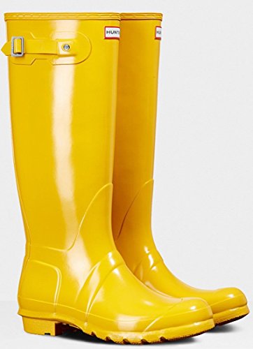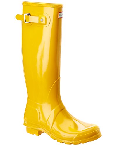 Studio : Hunter Publisher : Hunter Binding : Apparel Product Description Color/material: yellow gloss rubber. Design details: silver-tone hardware. Lightly padded insole. Rubber sole with traction. 1in heel. 16in shaft. 15in boot circumference. Please note: All measurements are approximate and were taken from a size 8; slight variations may occur.. Imported 0