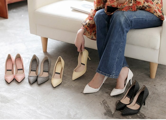商品名:パンプス レディース ポインテッドトゥ ピンヒール 選べるヒール高さ 型押し 2017 秋 冬 ファッション 靴 婦人靴