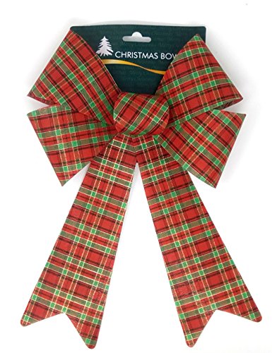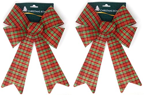 Holiday Crafts (TM) Set of 2 Hologram Bows 9 x 15 Inches Each - Red and Green Plaid)