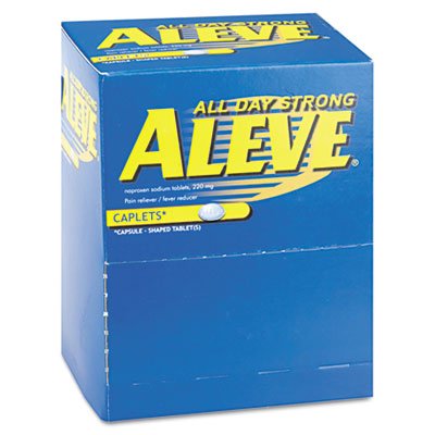 Studio : PEPSICO Publisher : PEPSICO Binding : Health and Beauty Product Description Temporarily relieves minor aches and pains due to arthritis, muscular aches, backache, menstrual cramps, headache, toothache and common cold. Also temporarily reduces fever. Packaged for individual use to replenish first aid stations and kits. Description: 1/Pack; Quantity: 50 per box; For Use With: First Aid Stations/Kits;Individual Use. 0