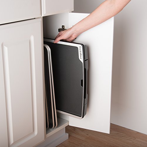 Great for every meal: breakfast, lunch, and dinner. Easily adjusts from a level cooking surface for eggs and pancakes to a tilted surface for meats. Legs fold in and drip tray locks in place for easy, compact storage. Heavy cast aluminum base with large 184-square-inch cooking surface. Premium nonstick surface ensures stick-free cooking and easy cleaning. Control Master heat control automatically maintains the desired cooking temperature. Slide-out drip tray empties easily. Easy to clean. Fully immersible with the heat control removed. Tilt to drain. Flip down the levers to tilt the grilling surface when cooking meats. Fold to store. Fits in most standard 18-inch kitchen cabinets. 120 volts AC, 1200 watts.Feature