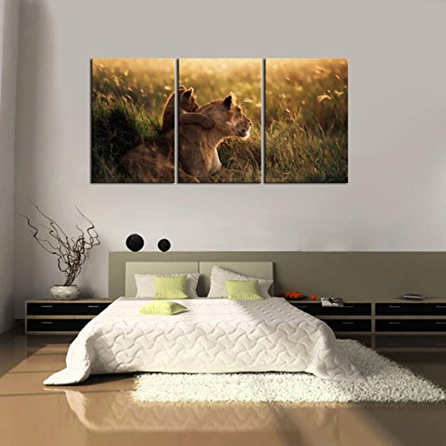 - Title : Canvas Oil Painting Prints Home Wall Decor Landscape Prairie Twilight Lion Stretched (no frame)