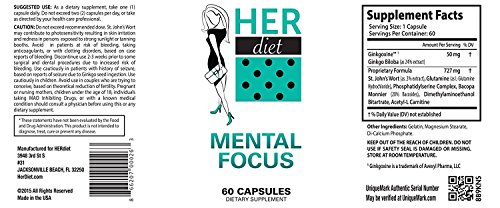 HERdiet Mental Focus for Women Extra Strength Supplement with Cognitive Brain Support Increase Clarity Boost Memory & Productivity
