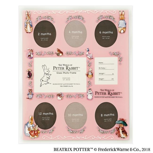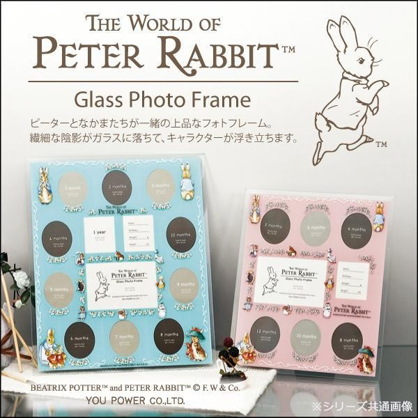 人気のピーターラビットをあしらった上品なフォトフレームです。2ケ月に1枚、1歳になるまでの写真を飾れます。イラスト入りの化粧箱なので、プレゼントにもおすすめ! |
