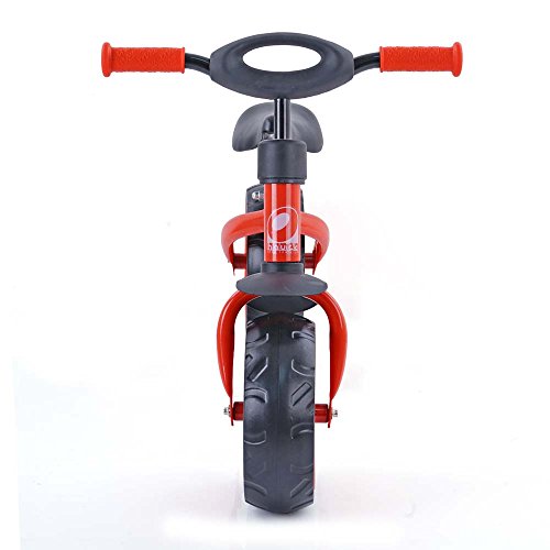 -. Feature : Feature: Eva foam/ rubber tires with bright red colored rims. Benefit: Safe for hardwood floors or the outdoors with sporty appearance / Feature: Padded seat with adjustable height. Benefit: For comfort and extends period of use / Feature: Foot- to-floor cycle. Benefit: Teaches balance and co-ordination, speed control
