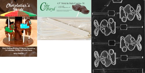 Cybrtrayd 'Bunny with Heart Lolly' Easter Chocolate Candy Mold with 50 4.5-Inch Lollipop Sticks and Chocolatier's Guide