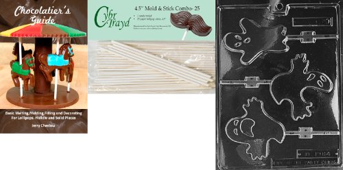 Cybrtrayd '3 Different Ghost Lolly' Halloween Chocolate Candy Mold with 25 4.5-Inch Lollipop Sticks and Chocolatier's Guide