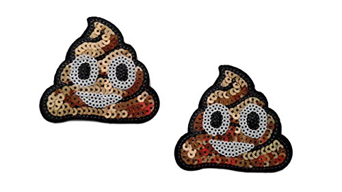 2 pieces Sequin SMILING POOP Iron On Patch Applique Motif Emoji Shit Poo Novelty Decal 2.8 x 2.5 inches (7 x 6.3 cm)