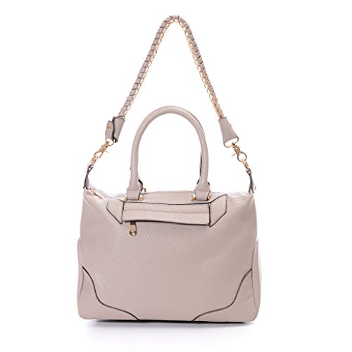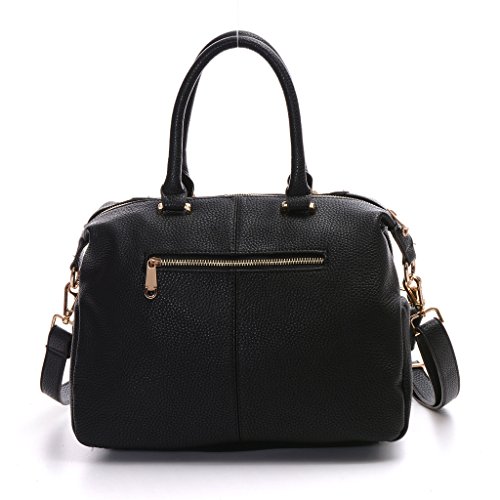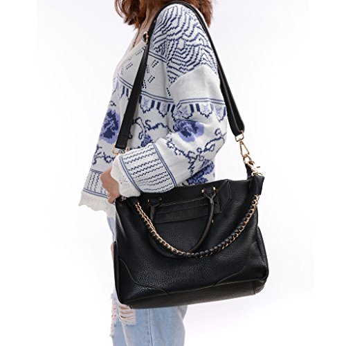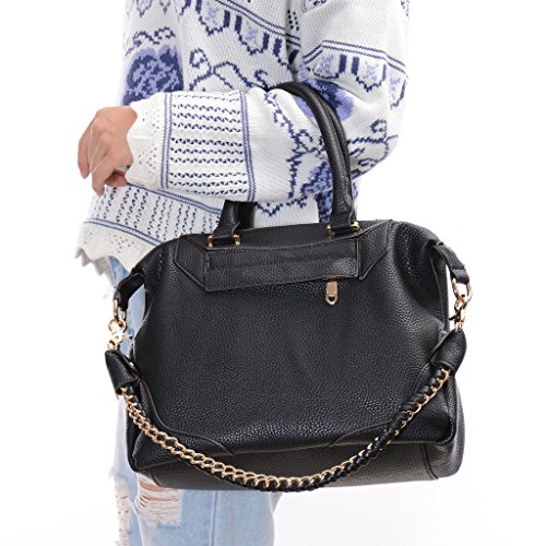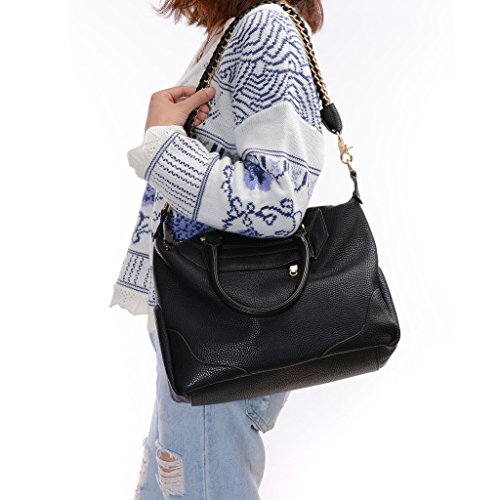 -. Feature : Material: Made of High Quality PU Leather,the gold accents are well done. / Closure Type: Top Zipper. With one long adjustable and Removable cross-body straps, one helical chain shoulder strap,a set of portable tape,one decoration.SIZE:12.2 * 6.3 * 9.8 inches(L*W*H) / Internal structure: one main large room which are large and can carry your clothes,Ipad,perfume,mirror,lipstick and some your daildy needs. 2 interior zipper pockets, 2 pocket-style organizers can fit your iphone 6s and paper tissue. / External:2 large zippered pocket on the back and front can hold your cellphone(iphone 6plus) ,keys ,cards or some othes things. The tote straps can droop on the two side when using the long straps,which make the bah fashion and good -looking! / Fashion,good looking ,practical manke the bag perfect ! Elegant urban style,Three carry ways:top hand,crossbody, Single Shoulder , perfect for using in Dating,Working Place,Shopping,Traveling. office, school or any other daily occasions.