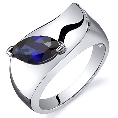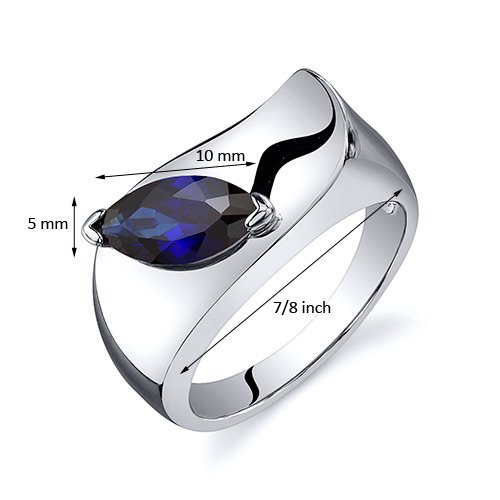 -. Title : Created Sapphire Ring Sterling Silver Rhodium Nickel Finish Marquise Shape 1.25 Carats Sizes 5 to 9