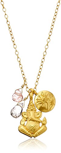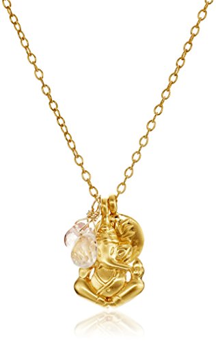 Empower and encourage yourself to surmount any obstacle with the Satya Jewelry Cherry Quartz and Rose Quartz Ganesha and Satya Lotus Pendant Necklace. Channel wisdom and success in all your efforts with this necklace adorned with gemstones, a round medallion, and pendant. Harmonizing style and spirituality, handcrafted, Satya Jewelry combines rose quartz, cherry quartz, the lotus, and Ganesha into an inspirational and energizing heirloom. Inspire your potential with this brass 18-karat gold-plated Ganesha pendant, depicting the remover of obstacles, with rose quartz for love and compassion and cherry quartz for clarity and healing. Secure the 24-inch gold-tone rolo chain around your neck with the spring-ring clasp. Honor your friends' and family's undertakings by gifting this necklace with the included Satya jewelry gift pouch.Feature