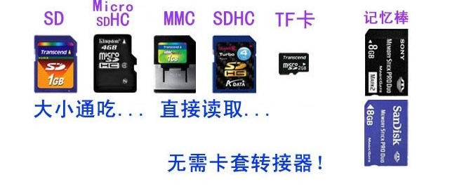 • 适用的闪存卡类型: TF卡  CF卡   SD卡 MS卡