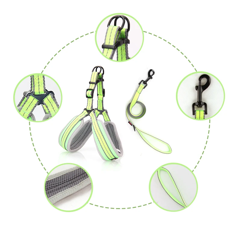 Dog Laesh Harness Set Material:Chest strap using high-quality nylon mesh cloth and nylon webbing car