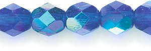 Preciosa Czech Fire 6 mm Faceted Round Polished Glass Bead, Dark Sapphire Aurora Borealis, 150-Pack