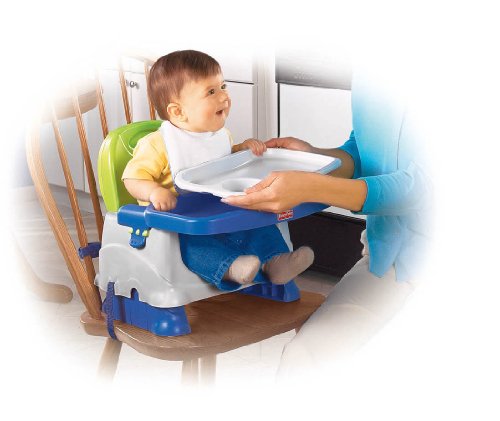Fisher-Price Healthy Care Deluxe Booster Seat, Blue/Green/Gray