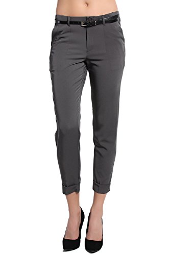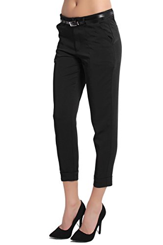 | TheMogan Women's Soft Drapey Tapered Cuffed Crop Trouser |