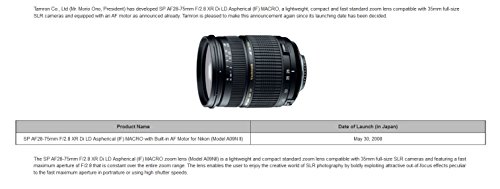Tamron AF 28-75mm f/2.8 SP XR Di LD Aspherical (IF) with Built-In AF Motor for Nikon Digital SLR Cameras (Model A09NII)