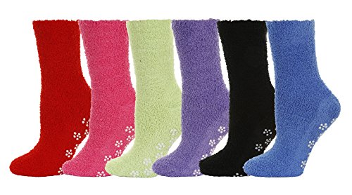-. Binding : Apparel -. Brand : Gilbin -. ClothingSize : One Size -. Department : womens -. Feature : Polyester Blend / Anti-skid grippers on bottom .These anti grip socks are perfect.They run true to your shoe size and the 6 different colors in the pack make it easy to match any outfit you are wearing. / Like being barefooted but warm? These are the softest socks!You will never go back to wearing fuzzy socks that are not soft. These socks are fuzzy and very soft! / With six pair there were enough to share / They are soft and fuzzy without much fuzz coming off. The elastic at the ankle is comfortably secure. The grips on the bottom are noticeable as you walk, which is a good thing if you want to feel safe from slipping. I have washed and worn them everyday for almost 2 months and they are holding up just fine. -. IsAdultProduct : 0 -. ProductGroup : Apparel -. ProductTypeName : SOCKSHOSIERY -. Size : One Size -. Title : Gilbin Super Soft Toasty Fuzzy 6 Pack Anti Grip Socks Assorted 9-11