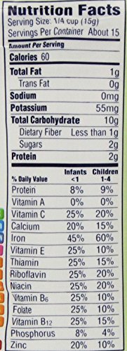 -. Feature : Baby's #1 Food source for Iron -among the foods your baby eats, GERBER® cereals are the #1 source of Iron and 10 essential Vitamins and Minerals / Made with VitaBlocks® Nutrient Blend for healthy growth & development / No added starch, artificial colors or flavors