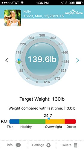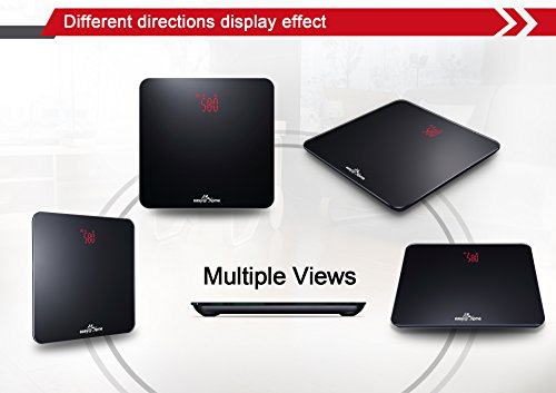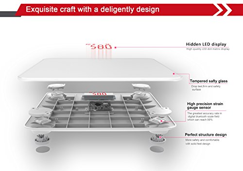 -. Feature : ✔ BLUETOOTH CONNECTION: Using Bluetooth BLE technology, the scale seamlessly uploads the measurements to the corresponding App that can be downloaded on iOS or Android device ( * Please CHECK the supported iOS and Android devices in product description. HealthKit App integration is supported.* ) / ✔ STYLISH AND ACCURATE: Measures body weight and BMI with high precision sensors in increments of 0.2 lb./0.1 kg; Modern, LED display / ✔ SAFE AND SMART: Reinforced, tempered glass top supports up to 400lbs; Smart step-on technology and auto shutdown allows for ease of use; Operated by 4 AA alkaline batteries (Included) / ✔ MOBILE APP: The EasyHomeScale App tracks and records every measurement for you; Creates tables, lists, and graph display options; Can store information for up to 10 users / ✔ SATISFACTION GUARANTEED: Satisfaction guaranteed with a 1-year warranty and support by a professional, technical team in US